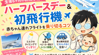 生後6ヶ月の赤ちゃんと飛行機に乗るコツを体験談で解説。ミルクのタイミング、優先搭乗、羽田空港のベビーカー貸出など、赤ちゃん連れフライトの不安を解消します。