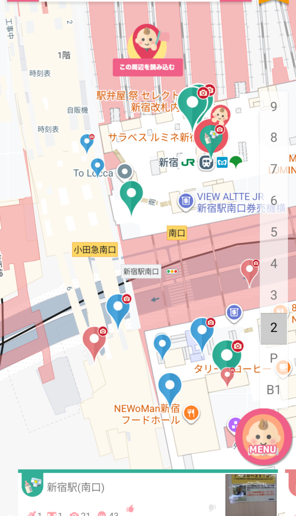 地図上でおむつ替えスペースや授乳室が見れるので、外出時の不安がかなり減りました。