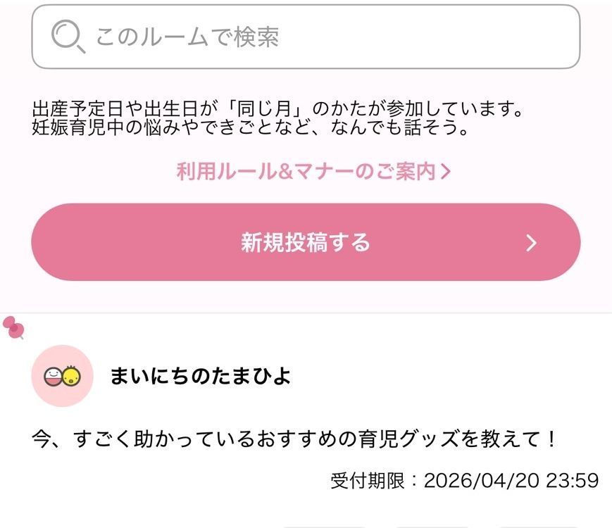 - 同じ予定日の人と情報共有できる