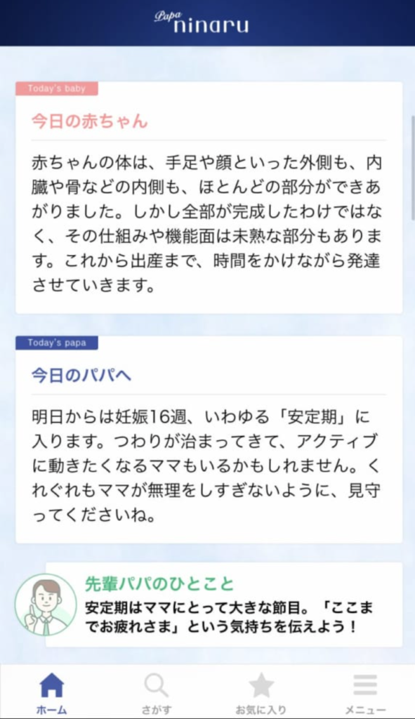 ⑤ ninaru baby|月齢に合わせて情報が届くアプリ